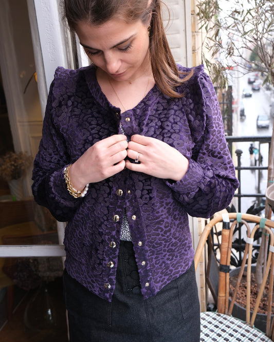 Teddy Sabrilla velours léopard violet