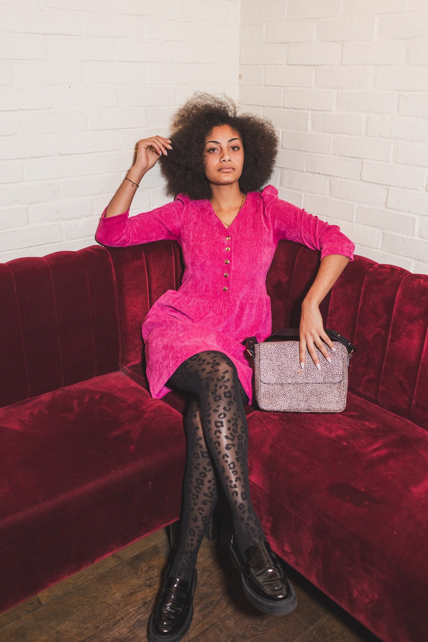- Mettez du peps dans votre dressing avec la robe Le Phare en velours rose fuchsia!