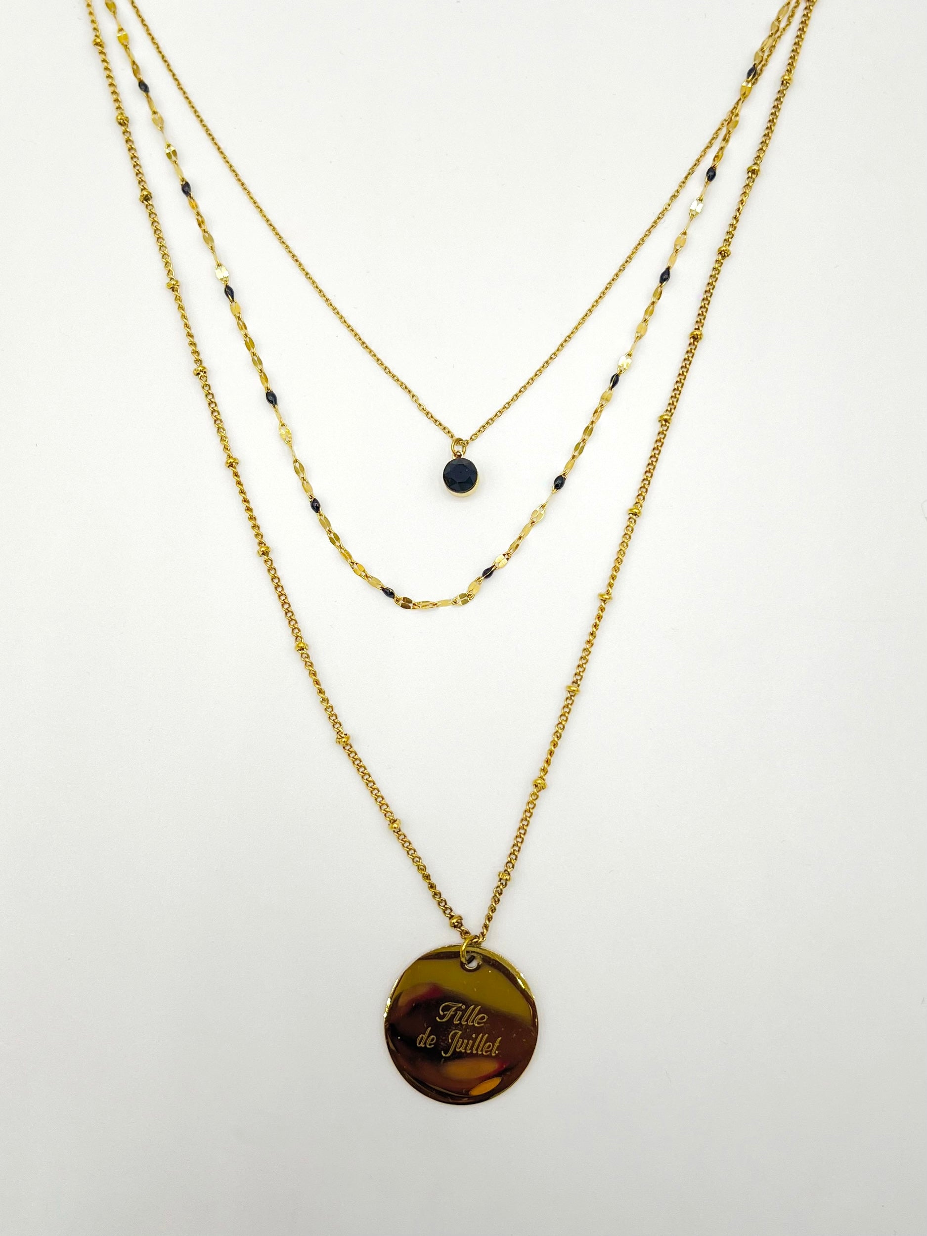 - Longueur chaine 1: 38 cm , longueur chaine 2: 42cm + chaine 3: 52 cm+ 5 cm de chainette de réglage.