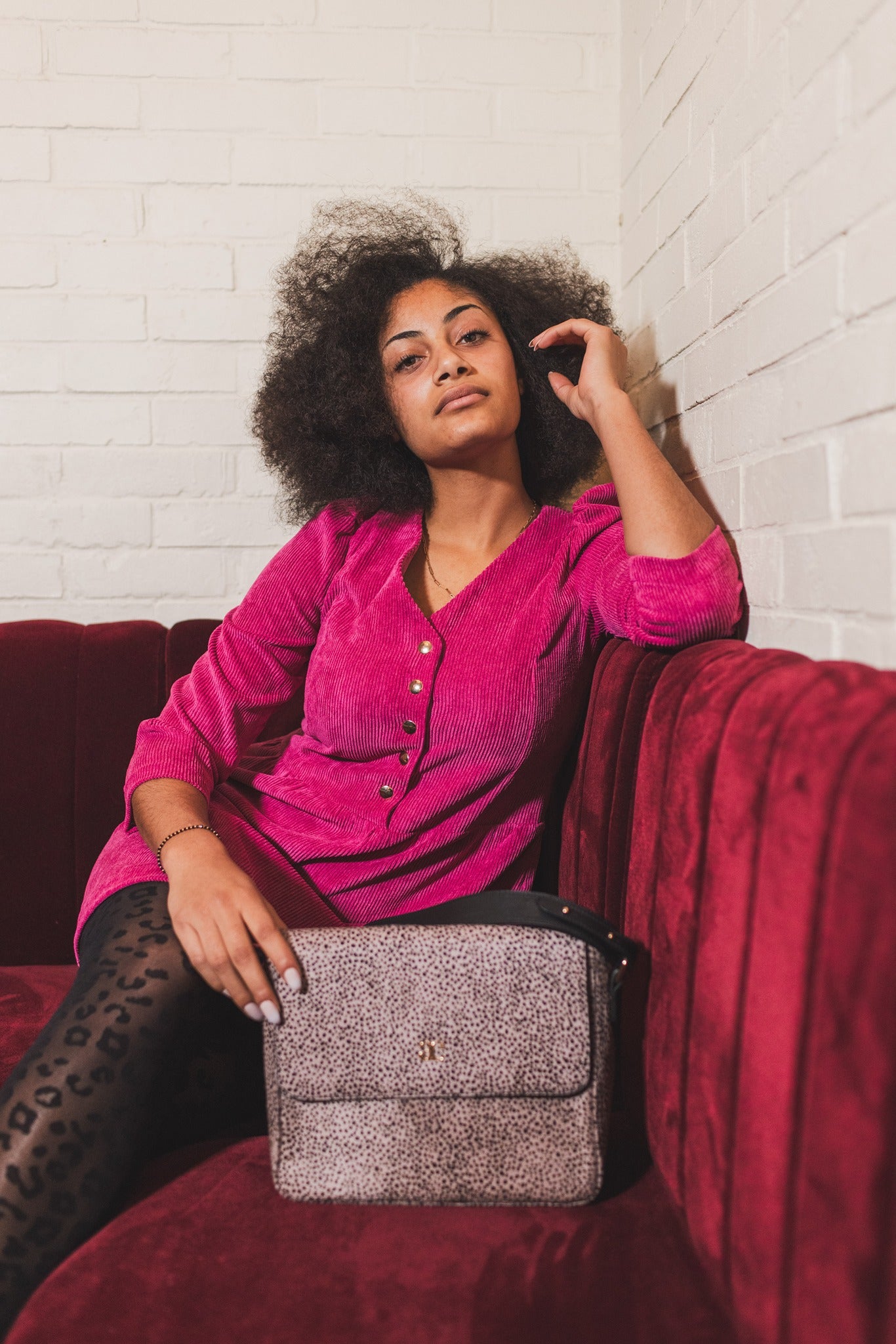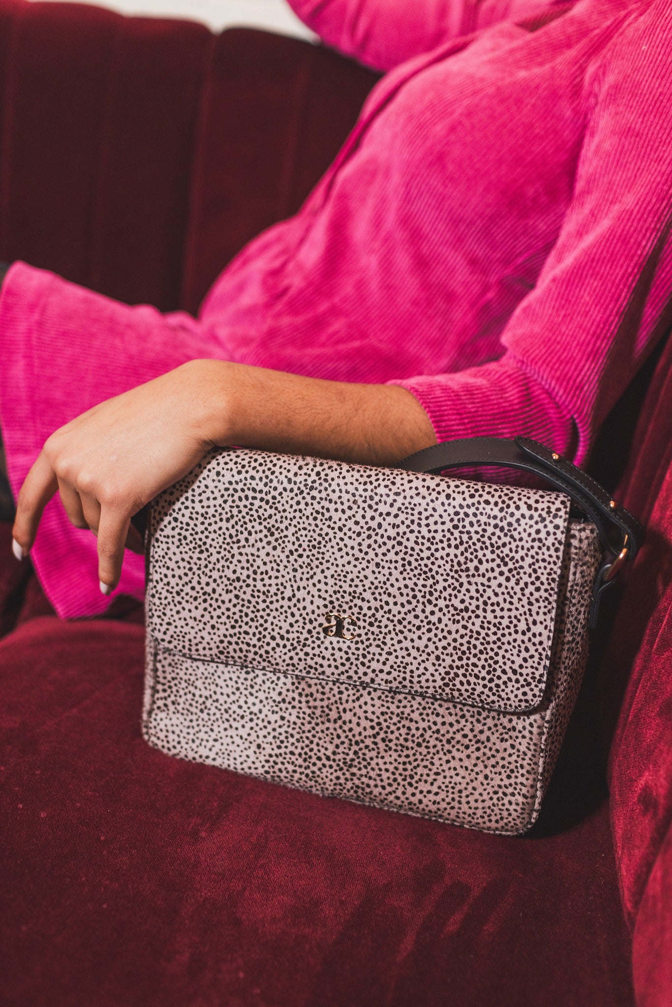 - Couleur tendre, matière douce et imprimé sauvage : ce sac a tout pour plaire.